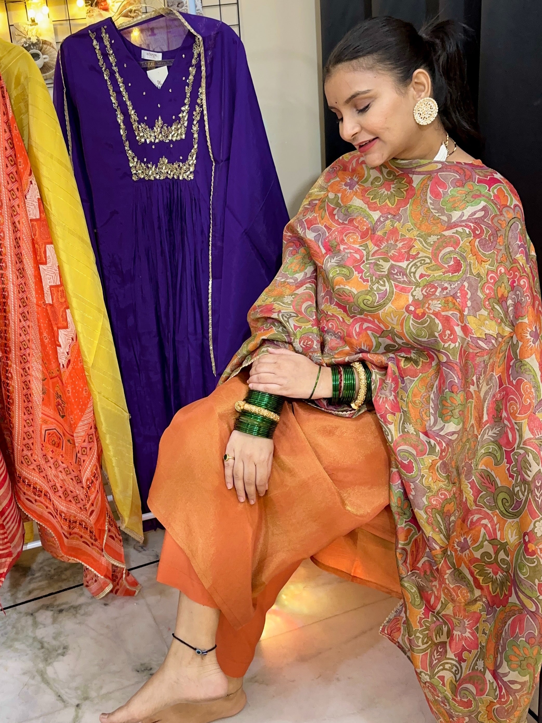 ✨ Fabric: Tissue Shimmer Kurta & Pants | Digital Print Dupatta